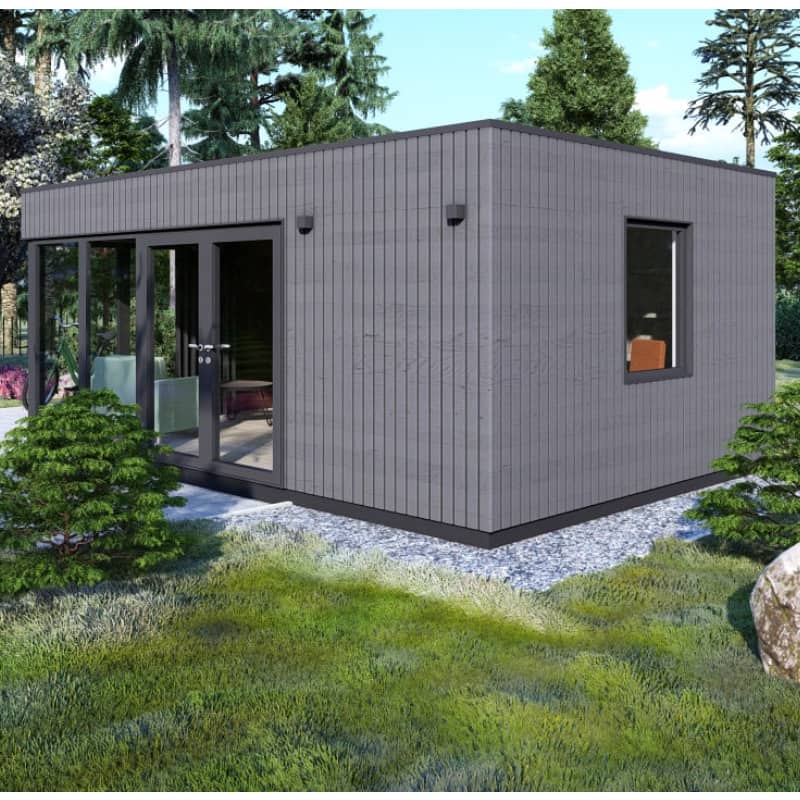 Introducing the extraordinary modern Bansko garden room, a true masterpiece of design and functionality. This remarkable 24m2 structure is constructed using high-quality SIP Panels, guaranteeing exceptional durability and insulation. With its captivating exterior adorned in natural wood cladding finished in a modern slate colour, this garden room effortlessly harmonises with any outdoor environment.