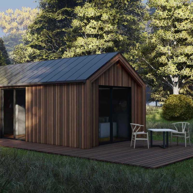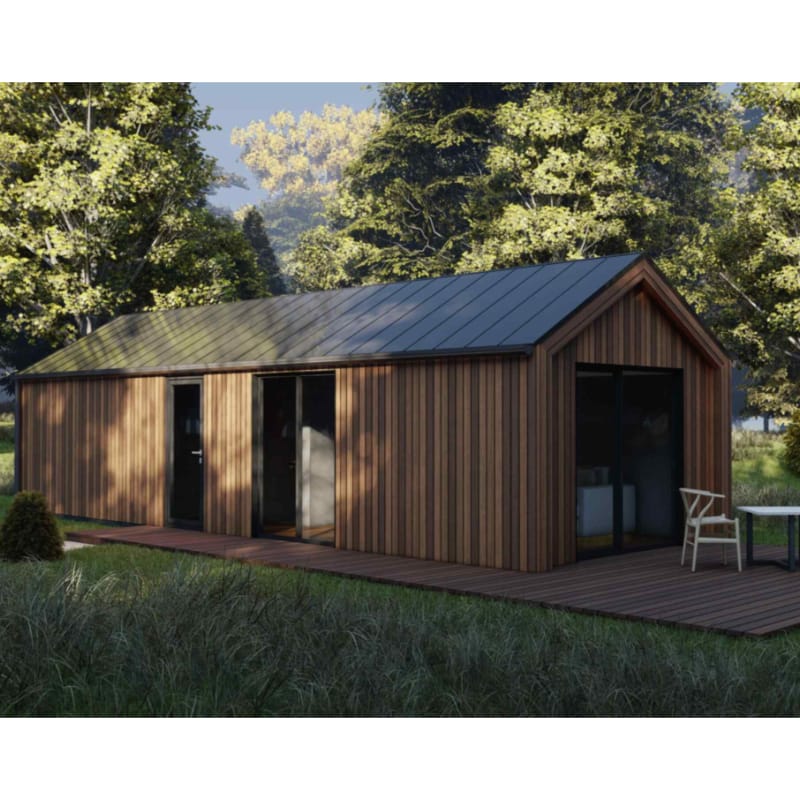 The 2-slope roof of Madrid Tiny Home is adorned with standing seam metal cladding, which not only adds to the home’s visual appeal but also serves as an eco-friendly and energy-efficient solution, particularly in the diverse Irish climate. The triple-glazed windows further enhance insulation, keeping the interior comfortable throughout the year while also reducing energy consumption.